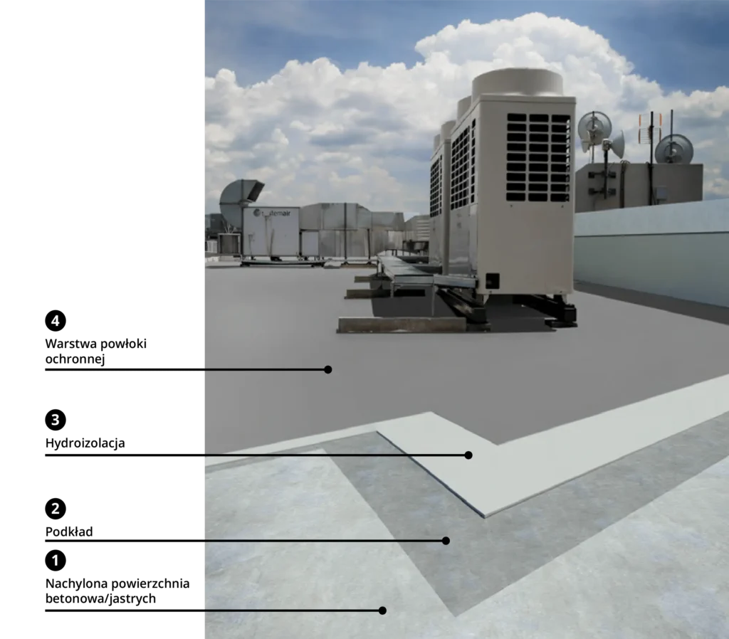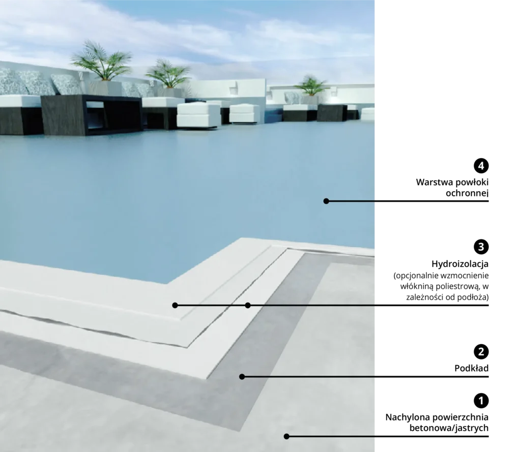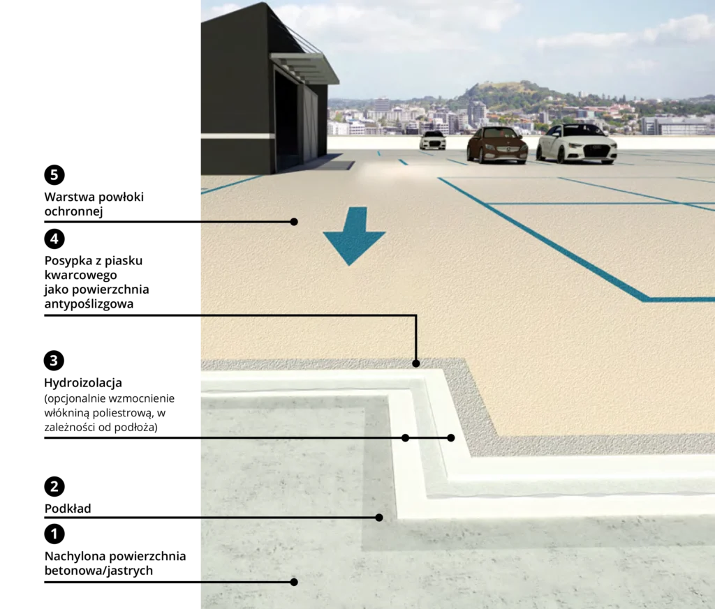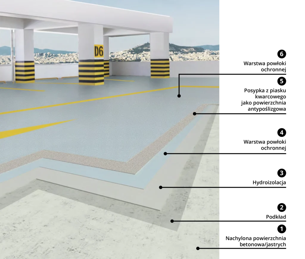 Zalecane rozwiązanie: Polimocznikowa membrana hydroizolacyjna z dodatkiem powłoki nawierzchniowej z poliasparaginuand