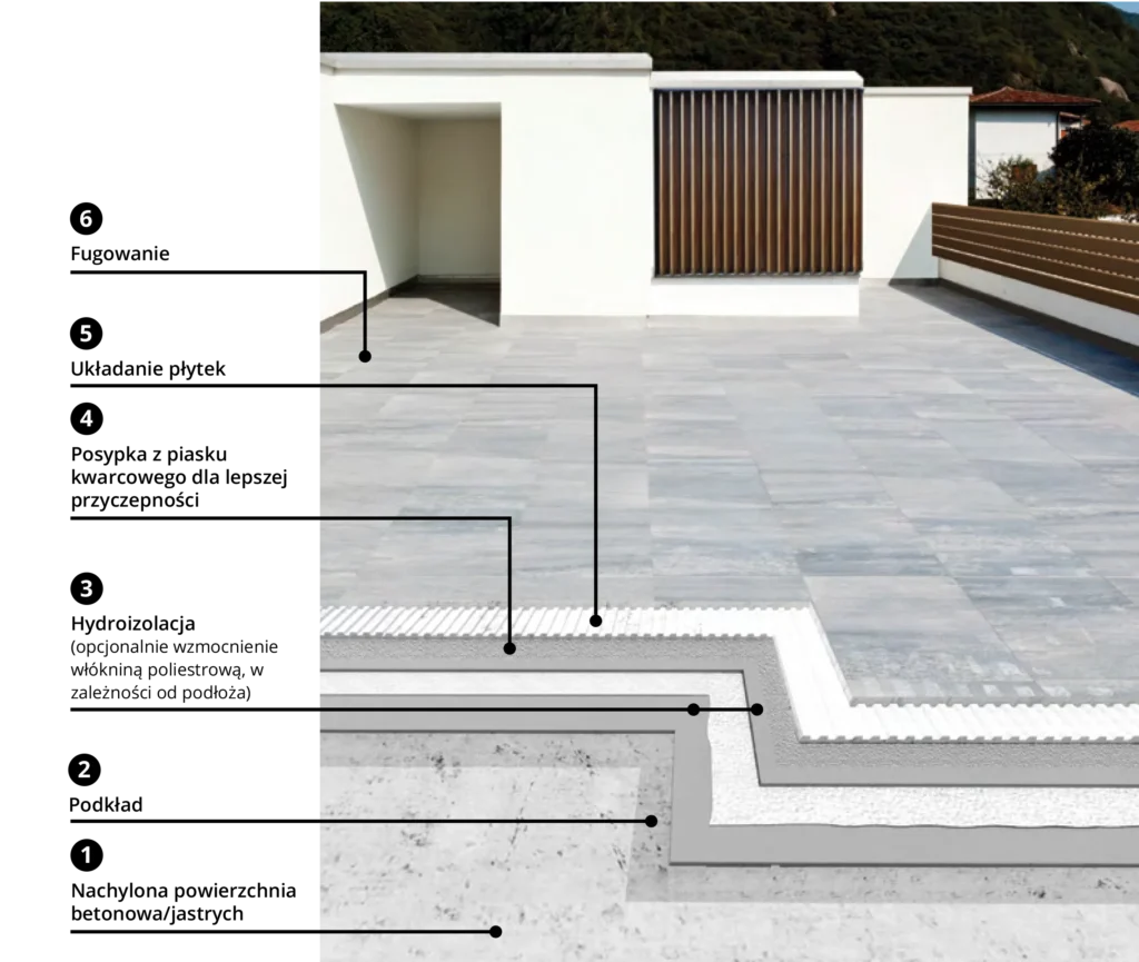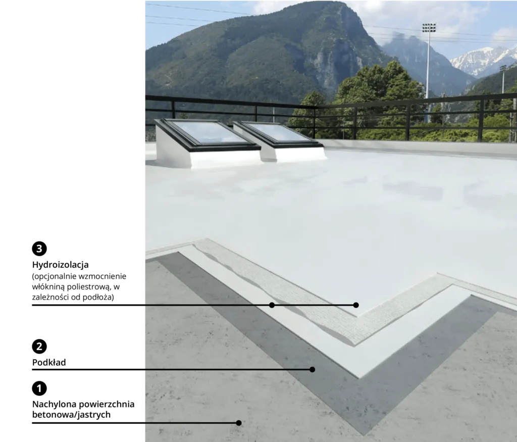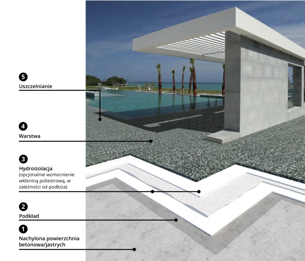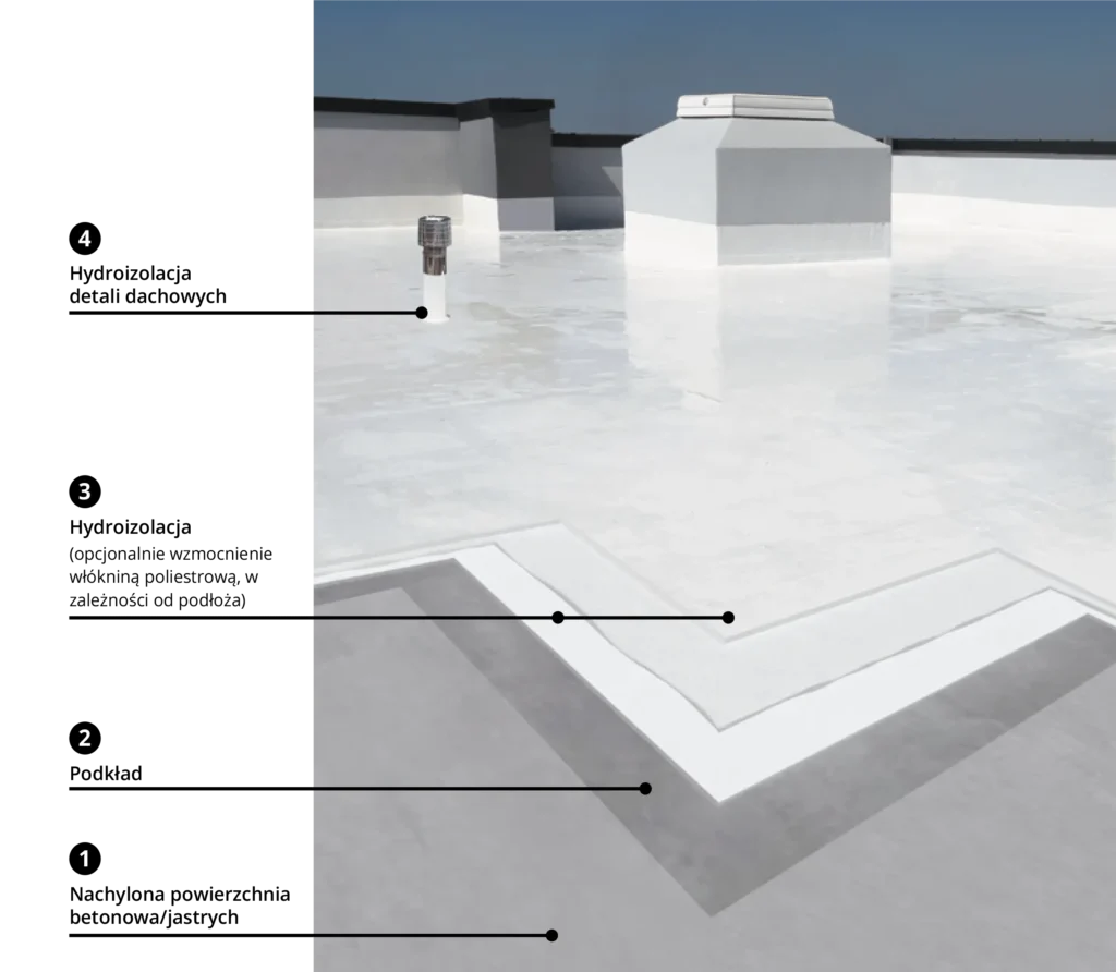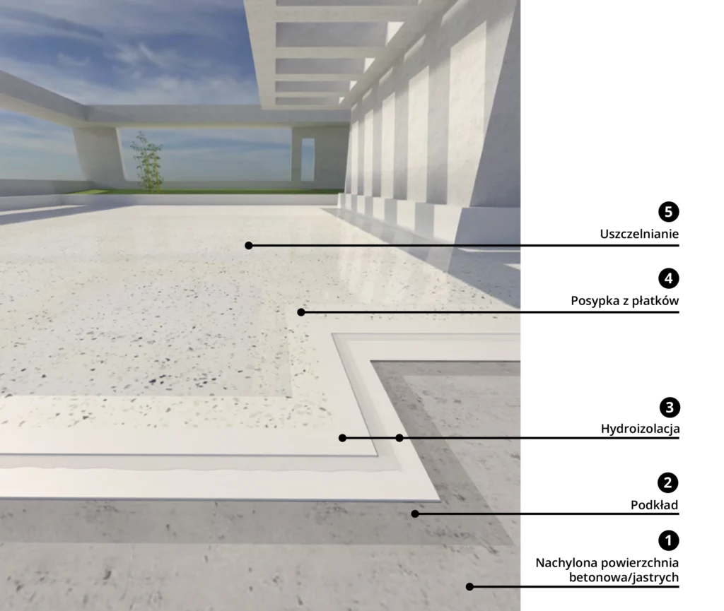 Zalecane rozwiązanie: Polimocznikowa membrana hydroizolacyjna z dodatkiem powłoki nawierzchniowej z poliasparaginuand